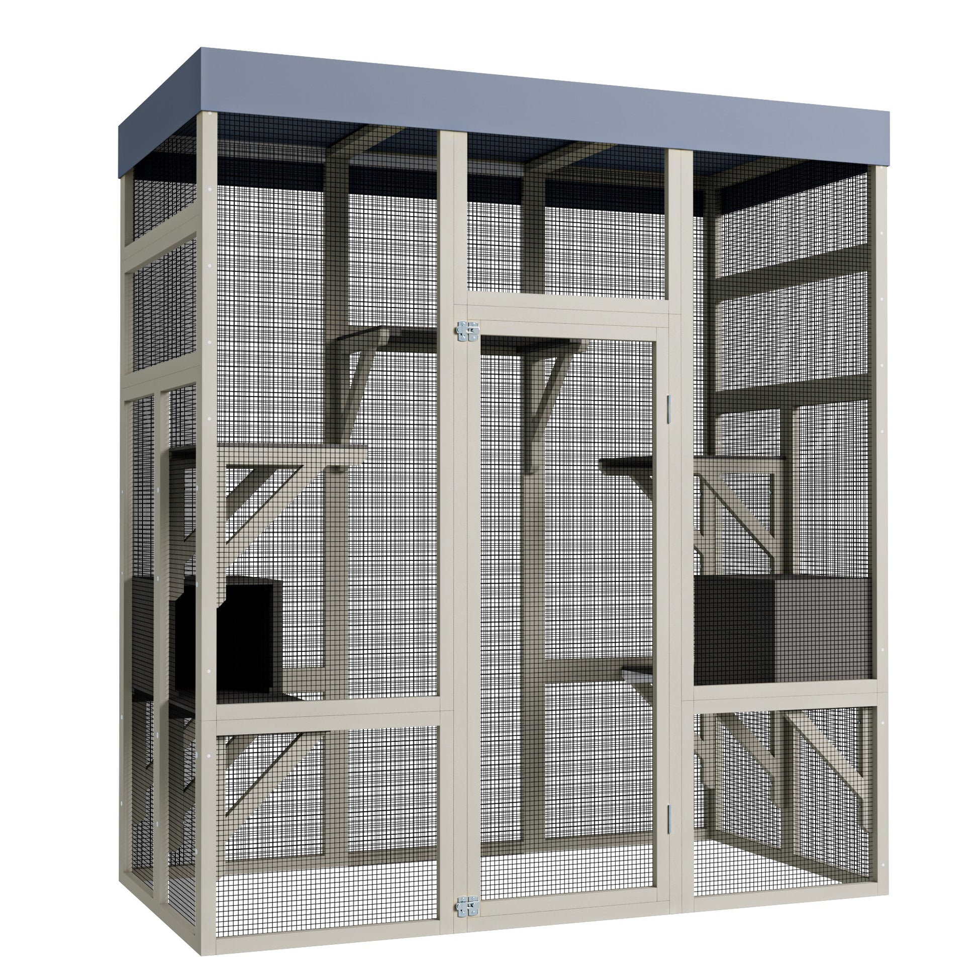 - 【Spacious Outdoor Catio】This 70.1' tall wooden cat enclosure offers plenty of space for multiple cats to climb, play, and relax safely outdoors. Ideal for backyards, patios, or balconies.