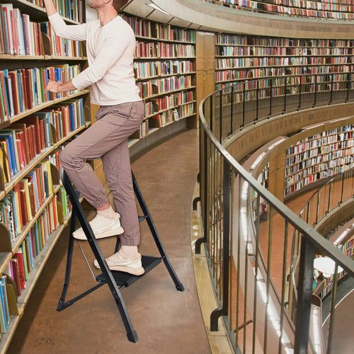 - [MULTI-USE] This useful step ladder can help you reach heights that are hard to reach and brings many conveniences to your life. You can also sit on the ladder when needing a rest outside for a while. Ideal for indoor and outdoor activities, garages, homes, kitchen, painting, camp, companies, schools, libraries, etc.