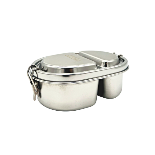 Stainless Steel DIVIDED FOOD CONTAINER With A Volume Of 500 Ml, Featuring Two Partitions For The Everyday Snack. The Container Is Divided Into Two Compartments, One Features A Smaller Capacity Of About 200 Ml, While The Second Fits About 300 Ml Volume. The Compartment Design Is Helpful For O Small Meals, And Ideal For A Young Child. Please Note That The Dividers Are Fixed And Non-Removable, Being C. The Container Itself Is Waterproof And Airtight, And The Partitioned Sections Are Sealed, So There Is No Leaking.