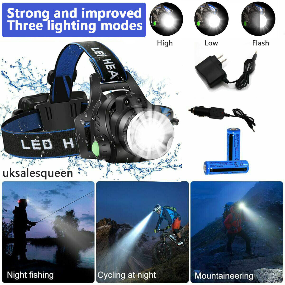 990000LM Rechargeable LED Headlamp Zoomable Torch Tactical Headlight