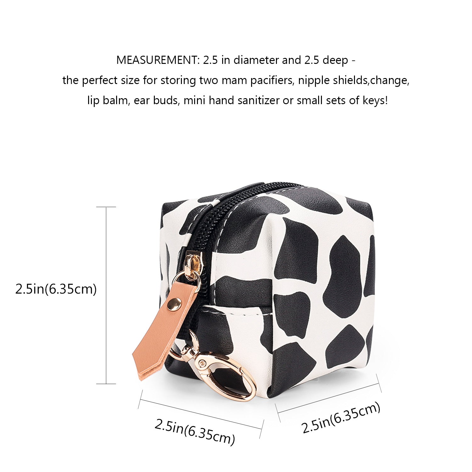 4、Suitable for Many Places: The pacifier bag holder can not only hold pacifiers, but also store lip balm, earphones, earplugs, small sets of keys, coins and other small objects.