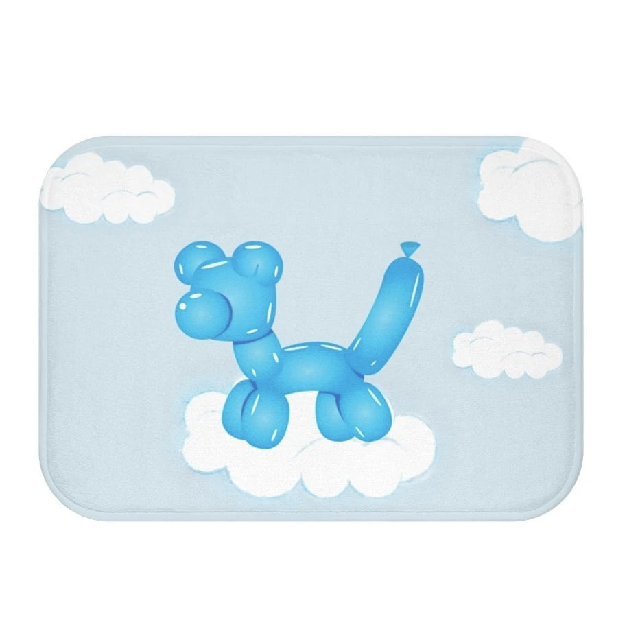 Balloon Dog on Clouds Bath Mat