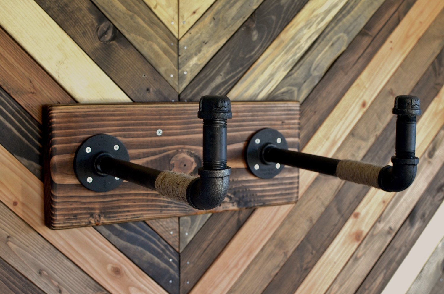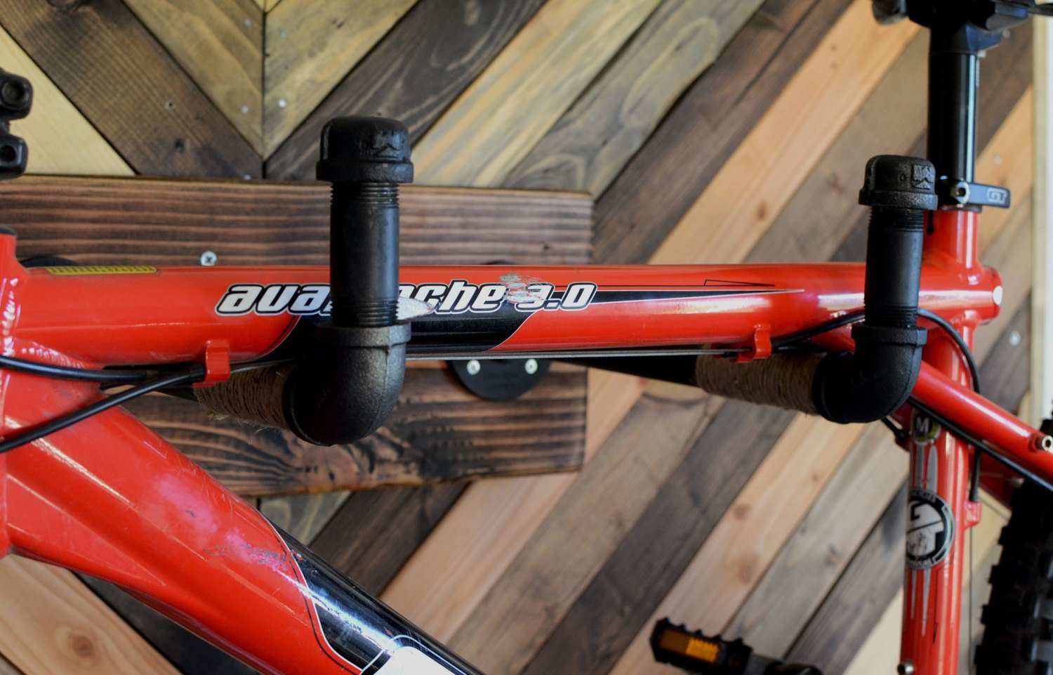 Nothing is stronger than black iron pipes. Nothing compliments iron pipes better than sturdy, thick wood and the earthy feel of real leather. That combination is what gives this bicycle rack the utilitarian coolness of the industrial era, the minimalistic simplicity of the modern era, and the rustic feel of burlap.