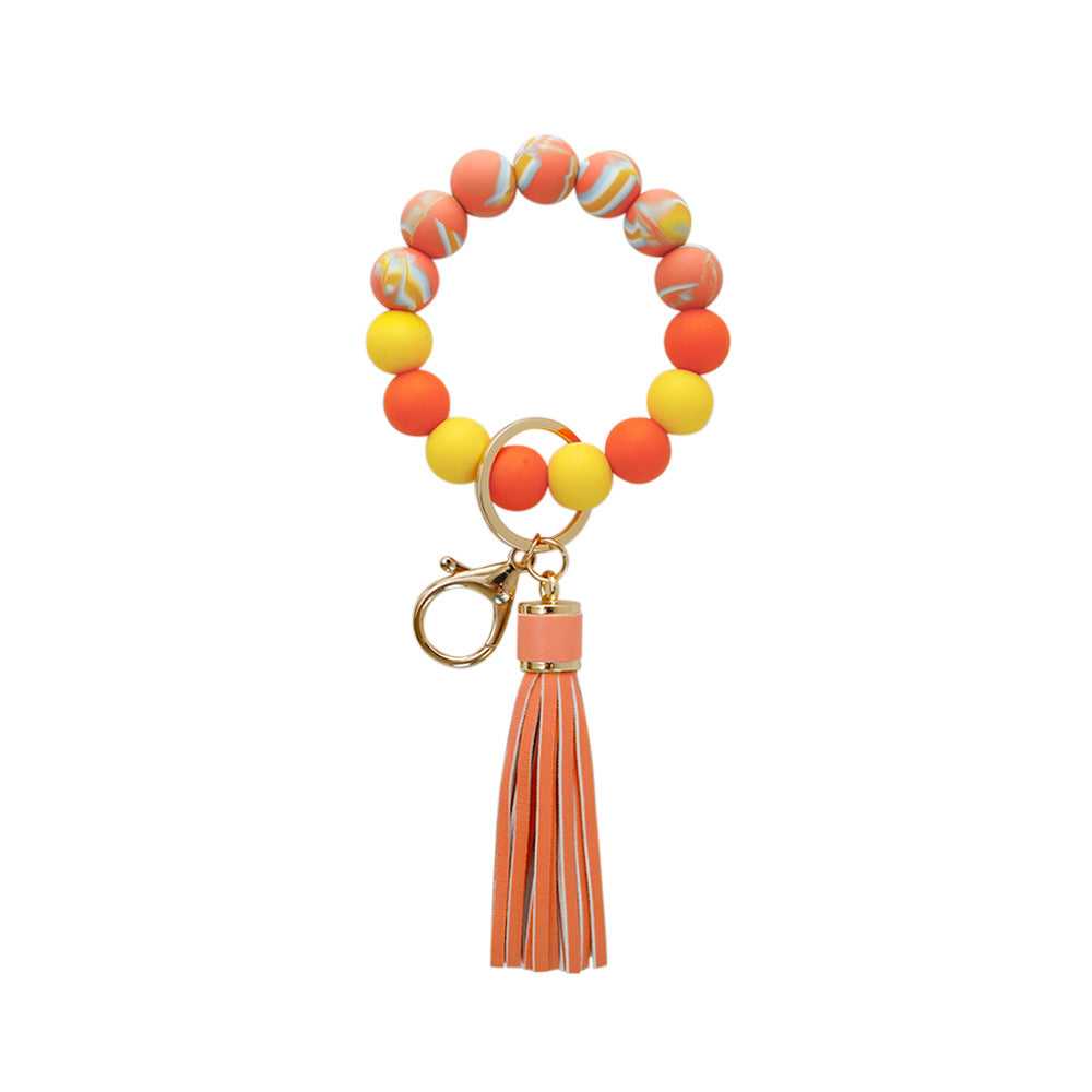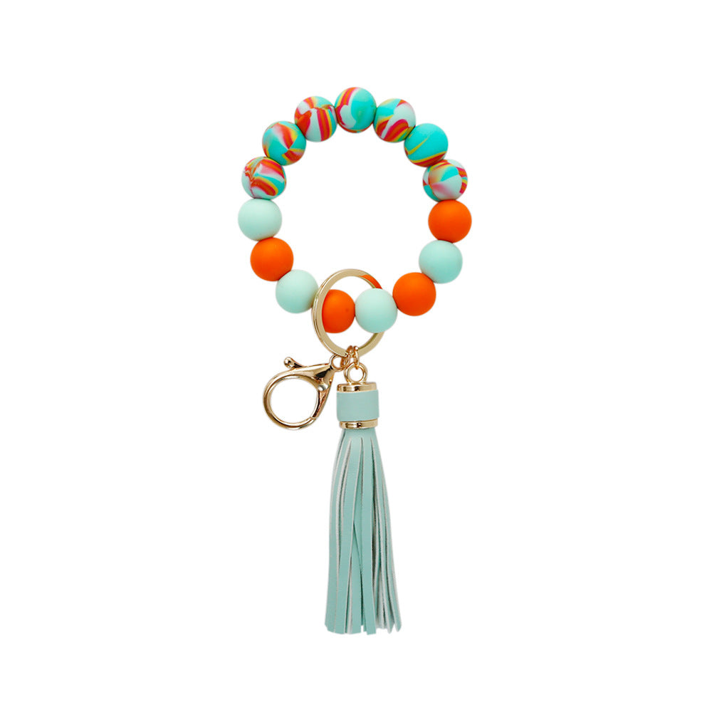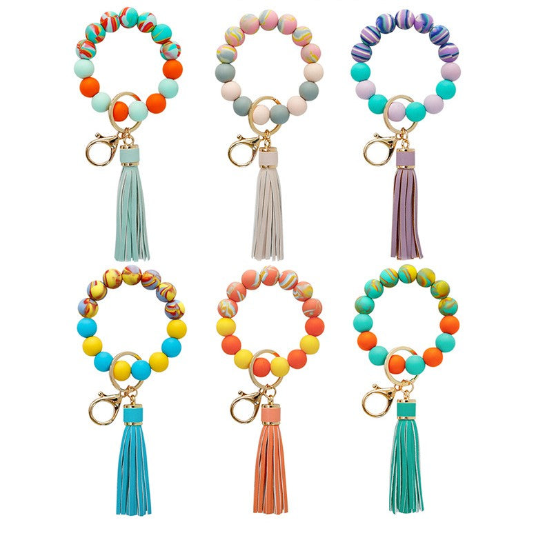 This cute keychain does double duty as a bracelet and a keychain. Slip it on your wrist and have your hands free for holding whatever you need. Look stylish with a bracelet with deliciously colored silicone beads. The assorted color bracelet may look like yummy candy, but it is made of durable silicone. The metal alloy keychain is easy to release to keep your manicure from chipping.