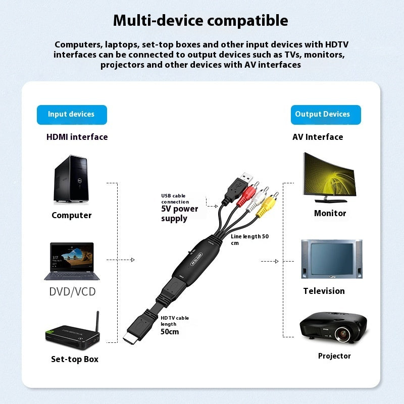 Color: HDMI to AV with RCA cable models, HDMI to AV with 2 terminals