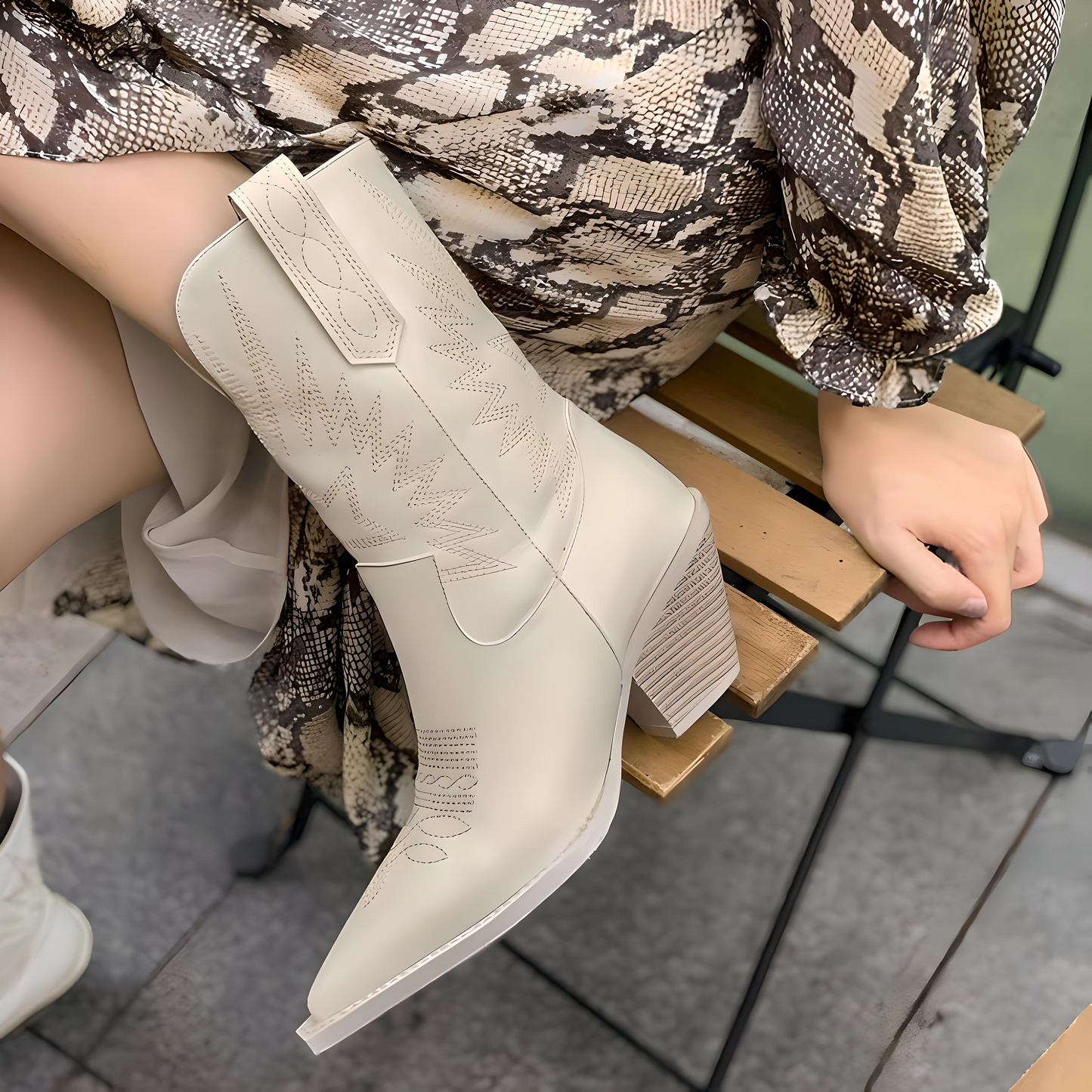 Vintage-inspired boots with modern comfort Step into the spirit of the West with these sleek Cowboy Rider Boots for women. Featuring classic stitching, a mid-tube shaft, and soft velvet-like inner lining, they blend timeless aesthetics with day-long wearability.