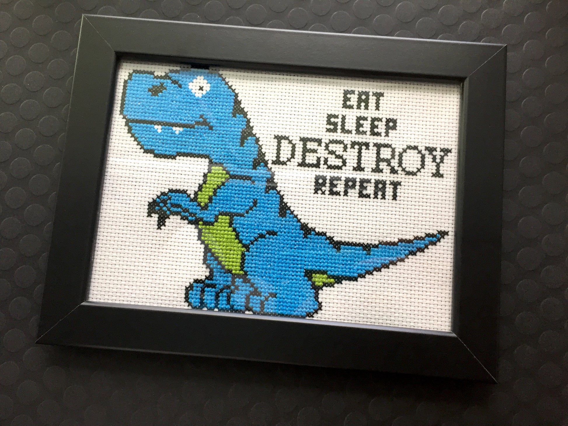 Dinosaur Destroy Counted Cross Stitch DIY KIT Intermediate