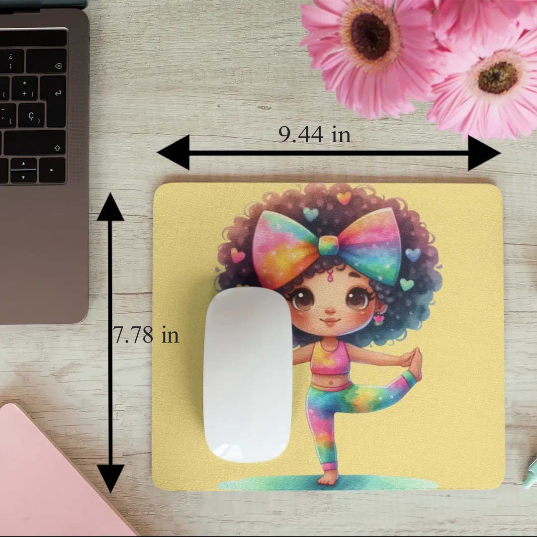 Afro Girl Yoga Pose Non-Slip Computer Mousepad Mouse Pad