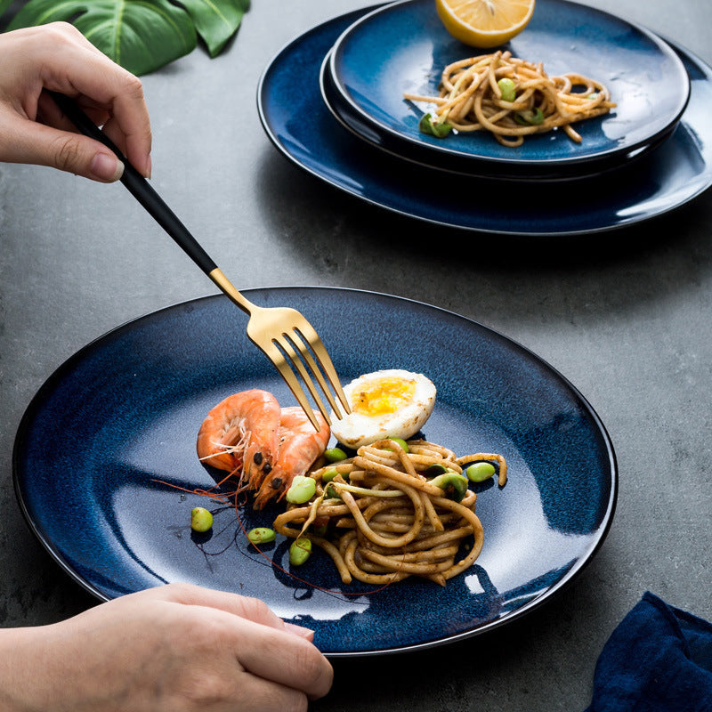 Color: Blue Kiln Variation Series-7.5-inch Shallow Plate / Length 19.3cm, Blue Kiln Variation Series-10 inch Shallow Plate / Length 25.2cm