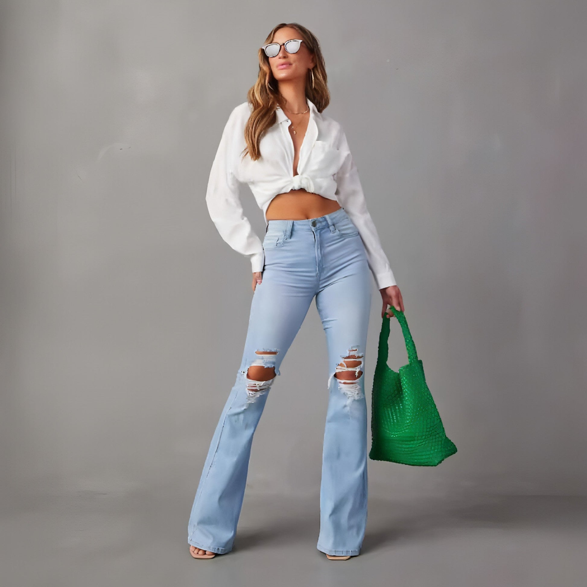 Upgrade your wardrobe with our Fashion Temperament Wide-leg Jeans. With its flattering fit and stylish features, these jeans are a must-have for every fashion-forward woman. Don't settle for ordinary jeans, experience the difference with our wide-leg jeans.