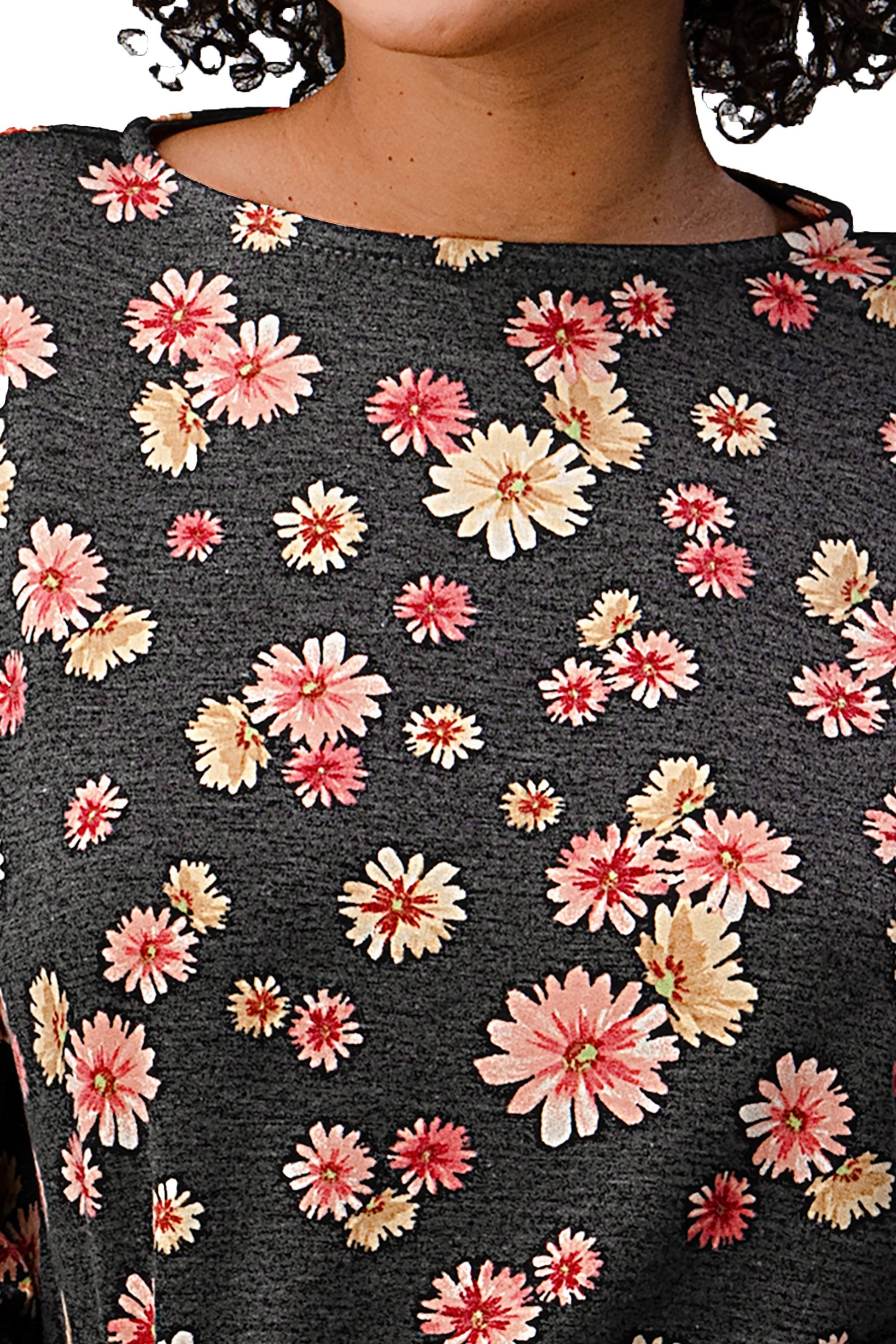 Floral Lounge Set - Comfy Long Sleeve Top and Shorts