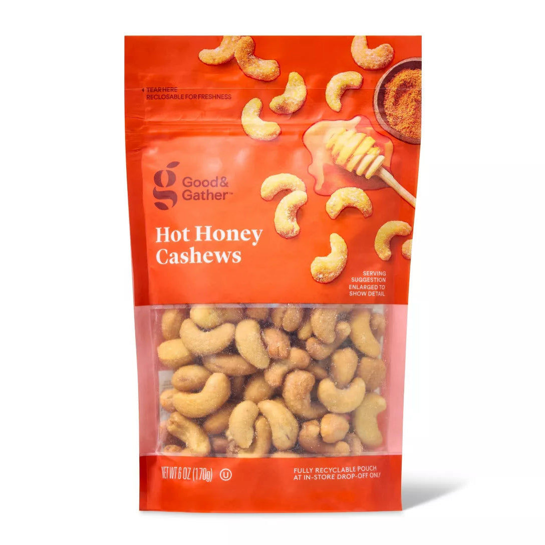 For a quick and tasty snack with a kick, these Hot Honey Cashews from Good & Gather™ make a perfect choice. These sweet cashews with a touch of heat come in a resealable 6-ounce bag that helps them stay fresh for longer. Great for game day, you can also pair them with your favorite meats and cheeses to put together a standout charcuterie board.