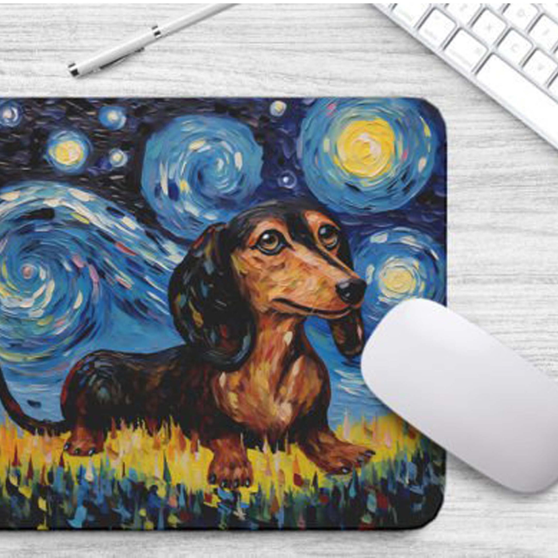 Starry Night Dog Dachshund Non-Slip Computer Mousepad