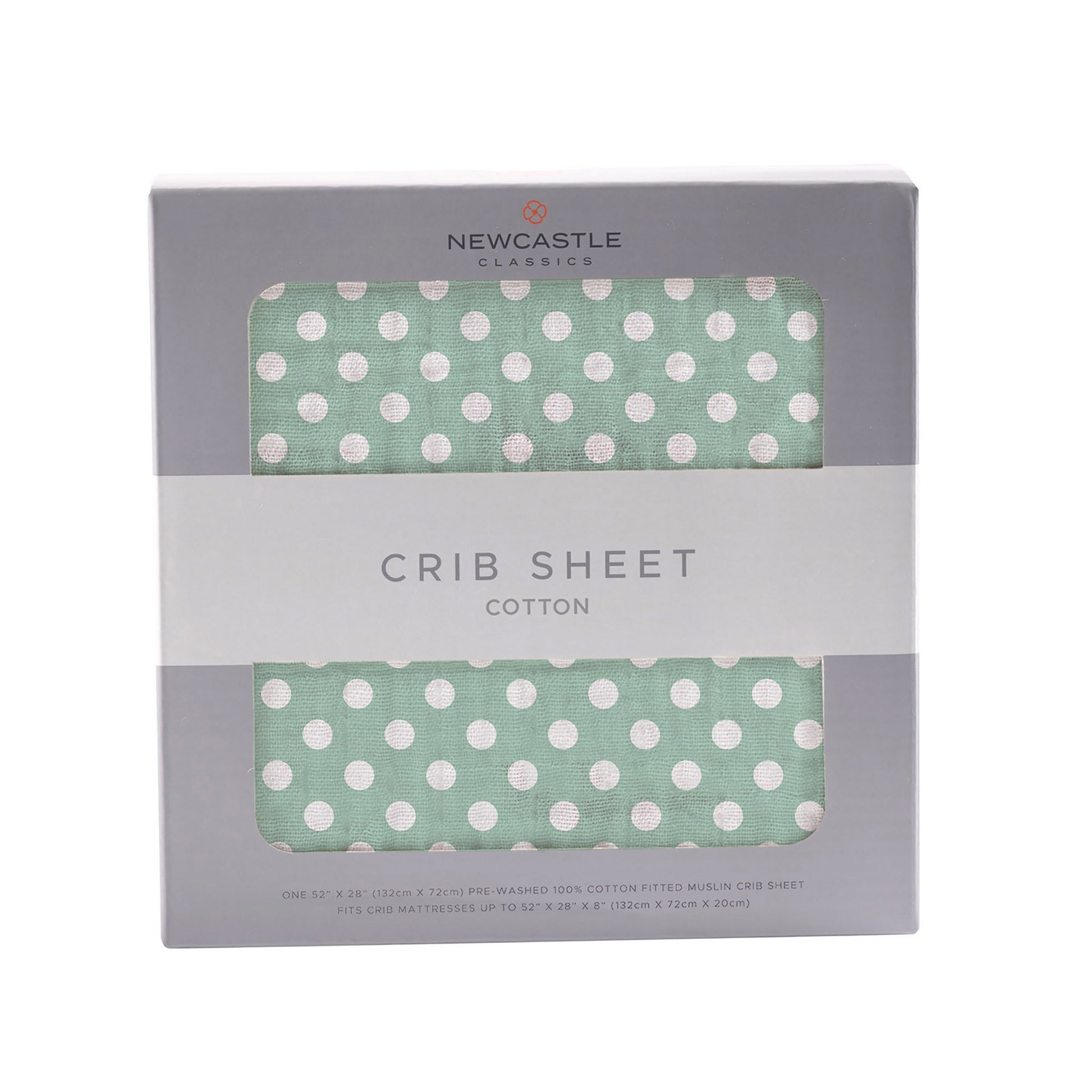 Jade Polka Dot Cotton Muslin Crib Sheet