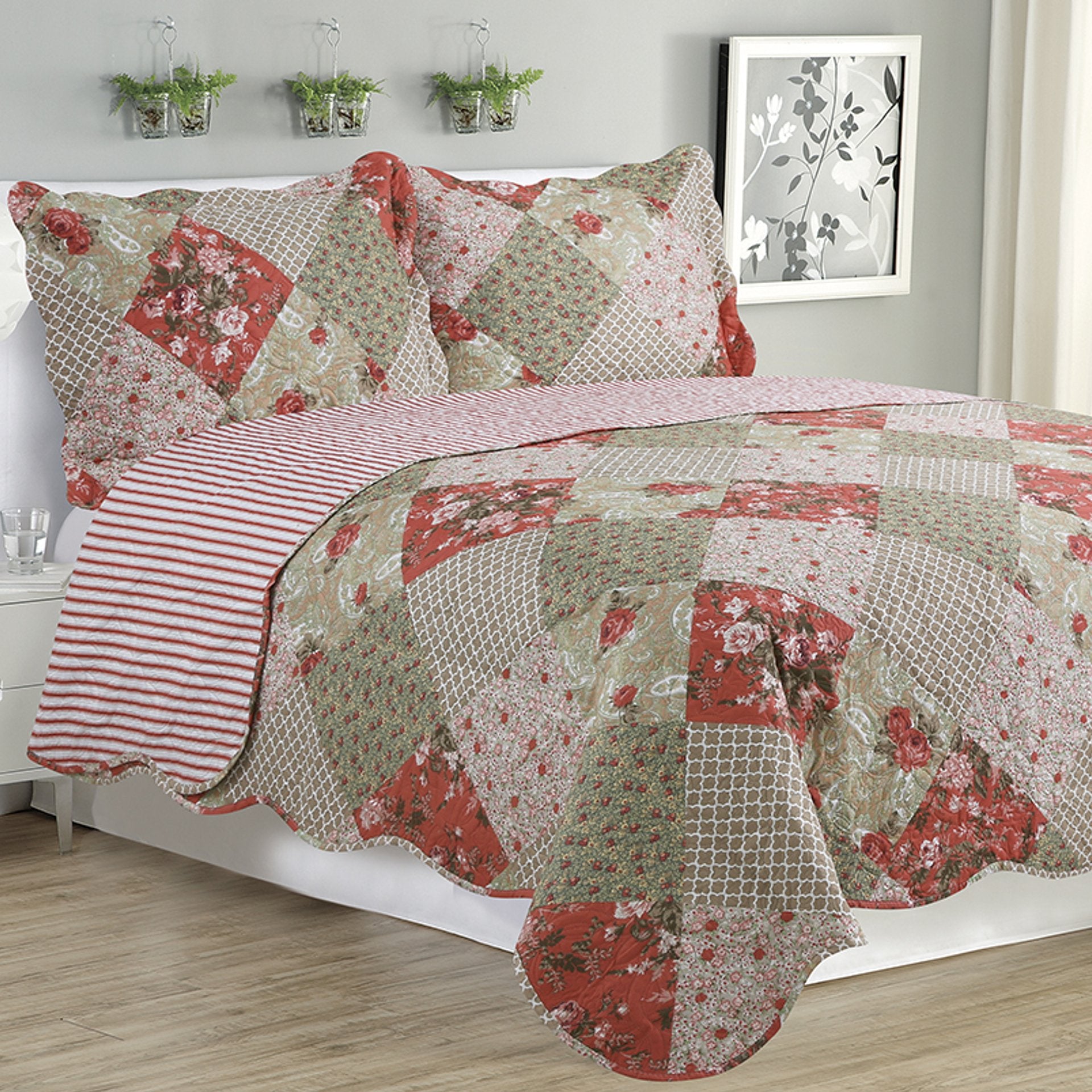 Kim - 3 Piece Quilt Set - Multi Color Floral