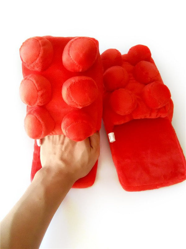 • The Building Brick Blue Slippers are made from polyester, so they're a comfortable fit.