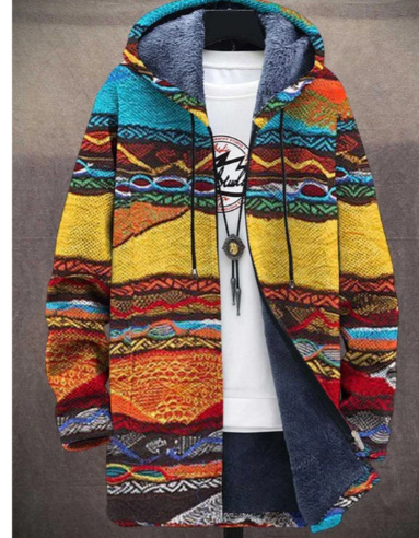 Men's 3D Personalized Printing Fashion Warm Hooded Jacket