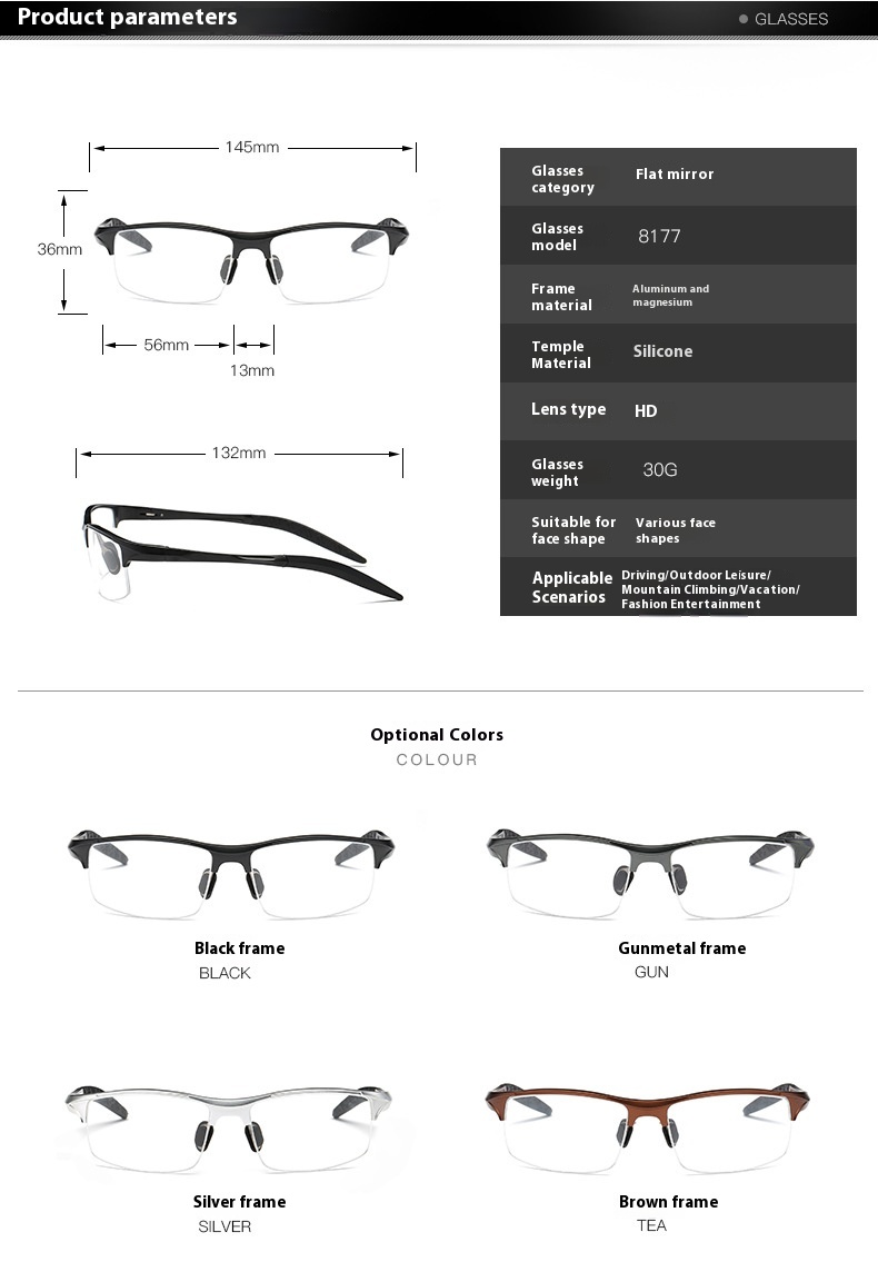 Men's Sports Plain Half-frame Optical Glasses Frame