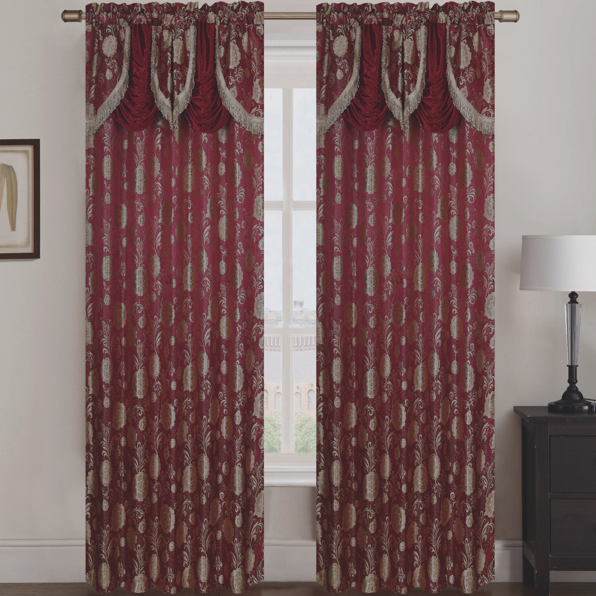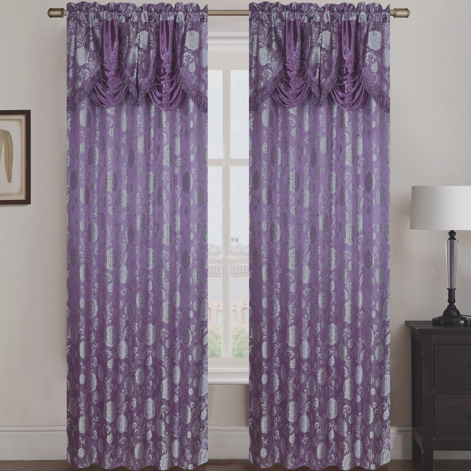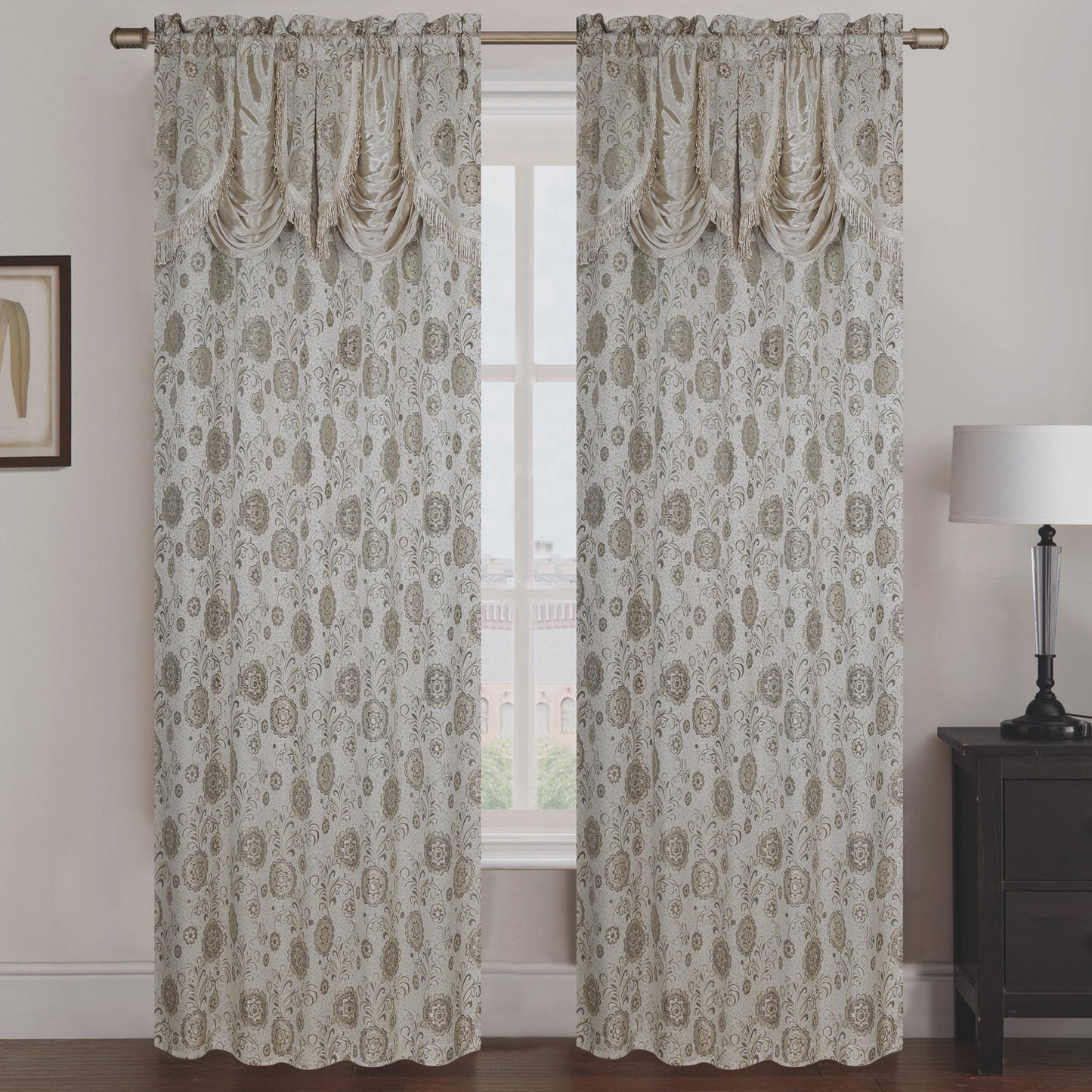 Molly Jacquard Rod Pocket Panel with Attached Valance Set of Two.
