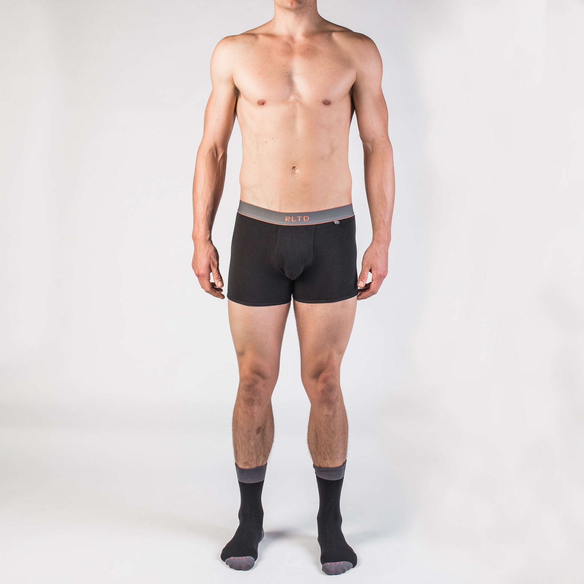 Limited edition Mondrian Los Angelesξcapsule collection features a slate grey waistband with orange RLTD stitching