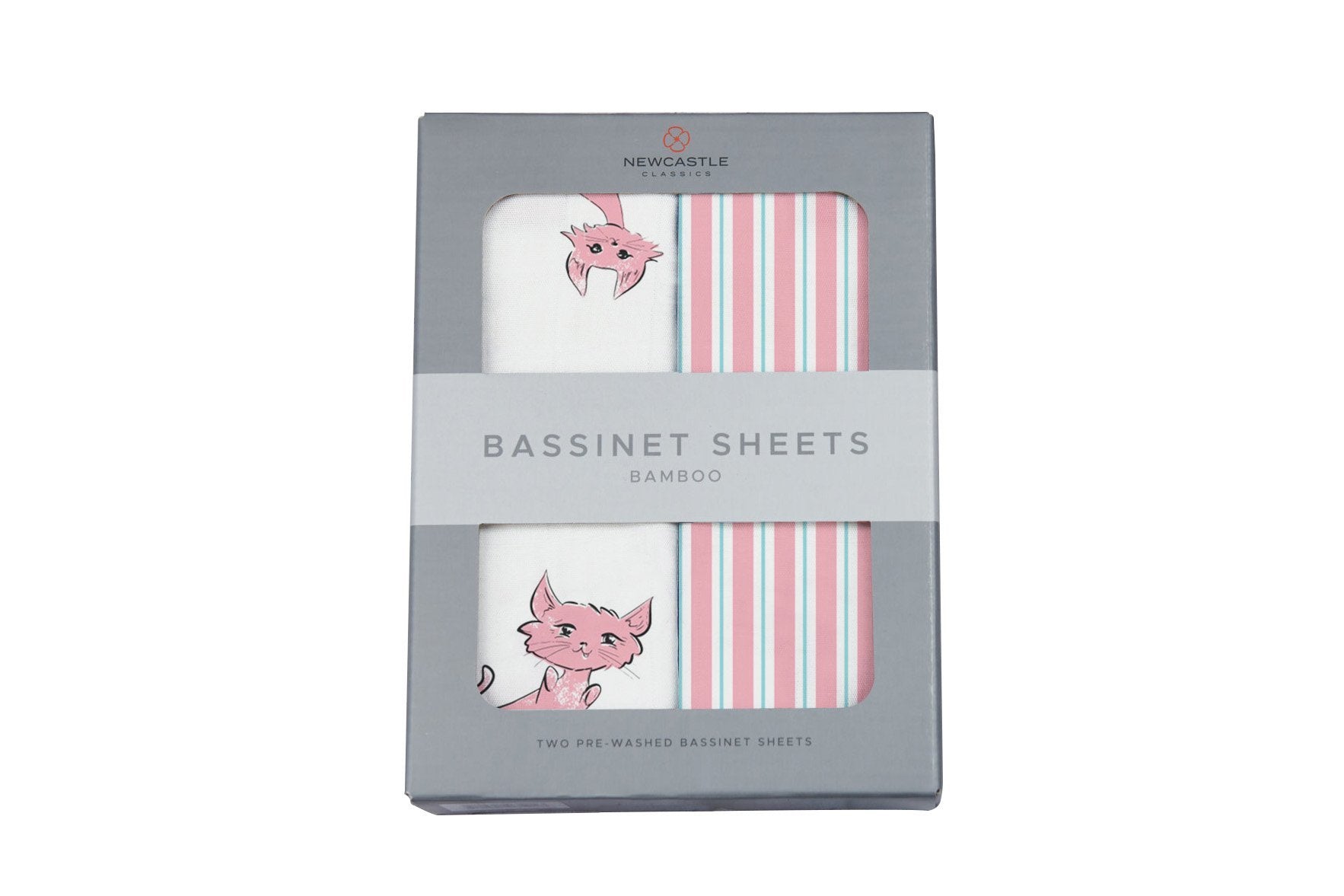 Playful Kitty and Candy Stripe Bamboo Changing Pad Cover/Bassinet