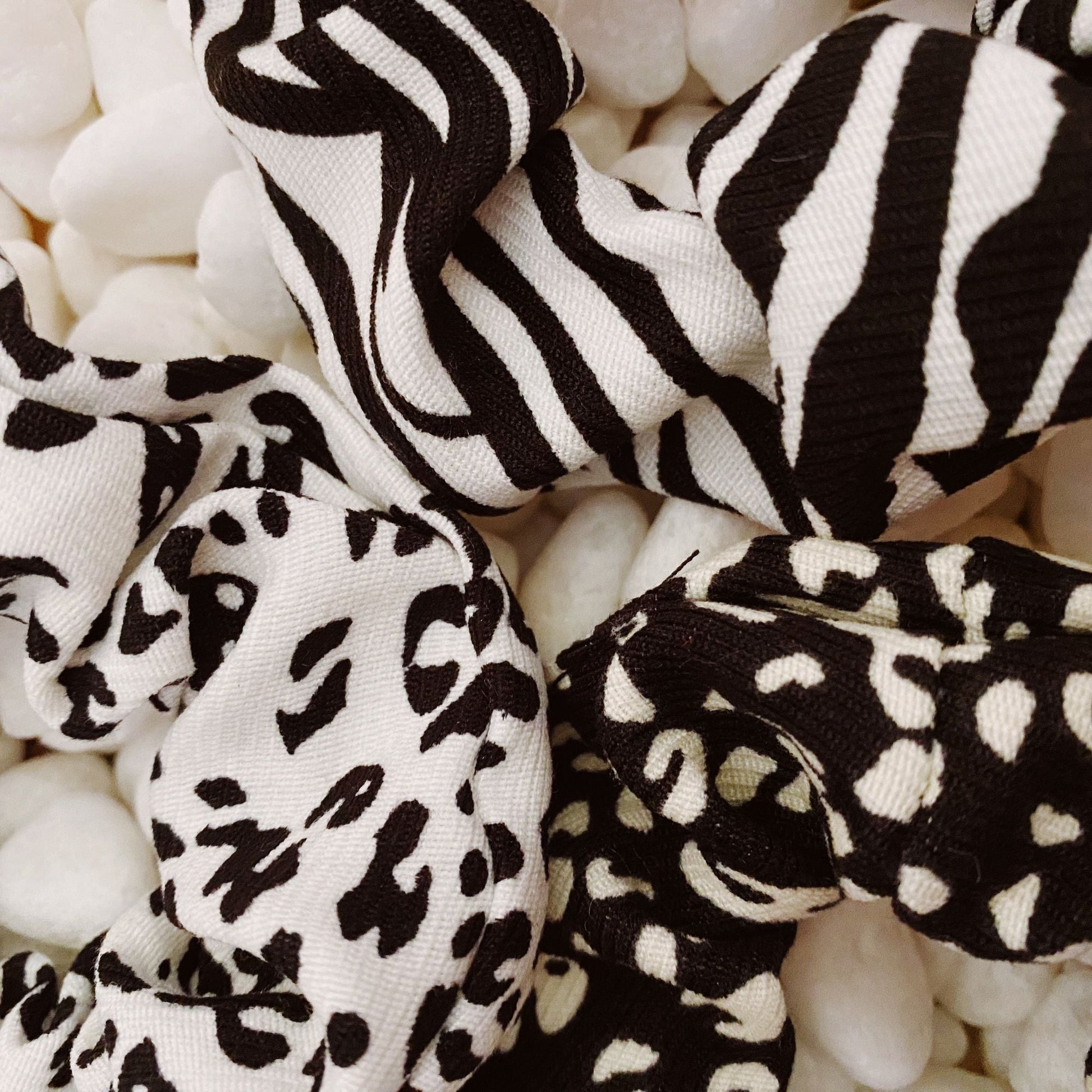 The set features three unique animal prints, nicely blended with black and white. Perfect for adding a subtle touch of wildness to any look, this set is a must-have for fashionistas.