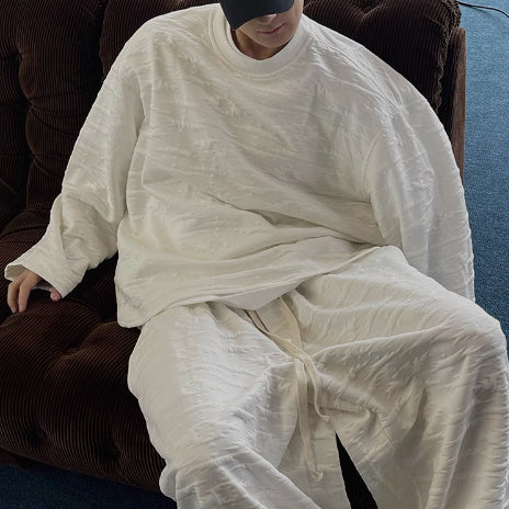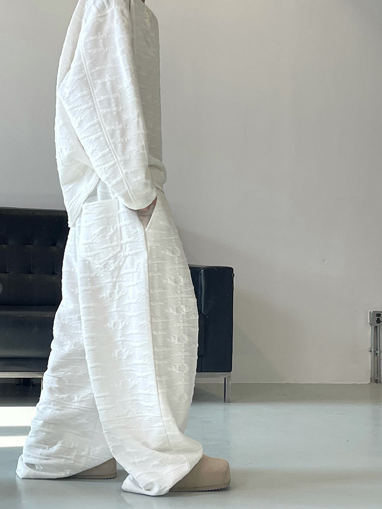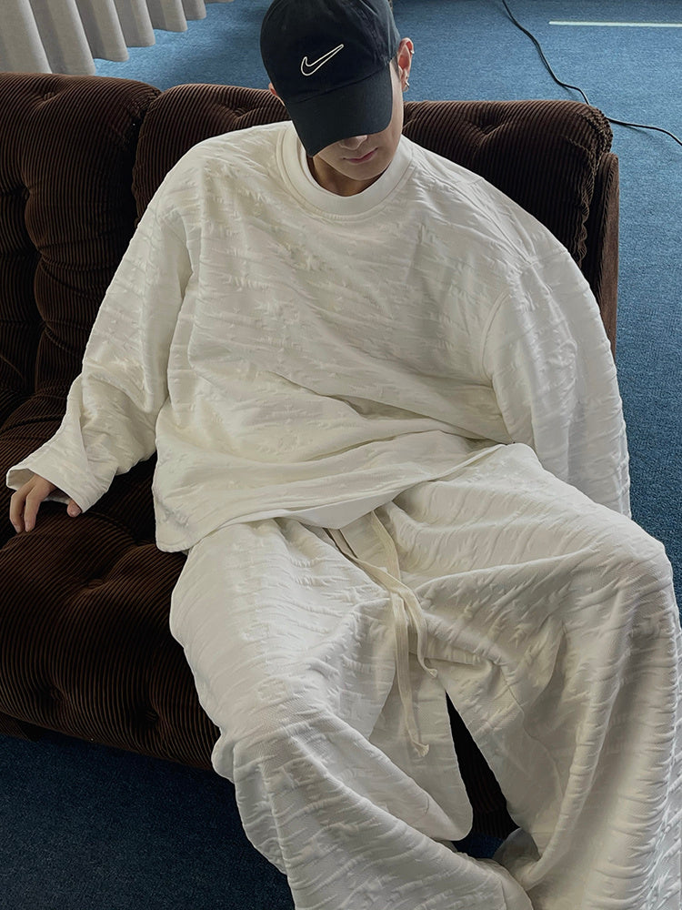Retro Loose Profile Three-dimensional Ethnic Style Jacquard Milky White Sports Suit