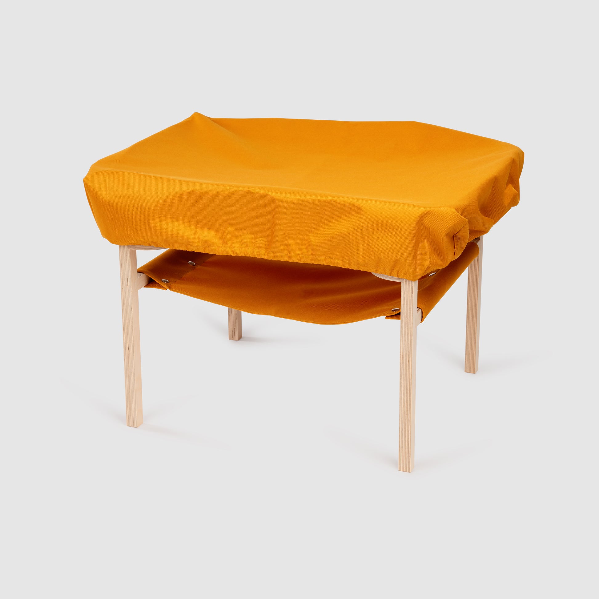 The play table has a fabric shelf where you will be able to place all your play tools. The table also comes along with a fabric topper, so you will be able to leave it outside without worries.