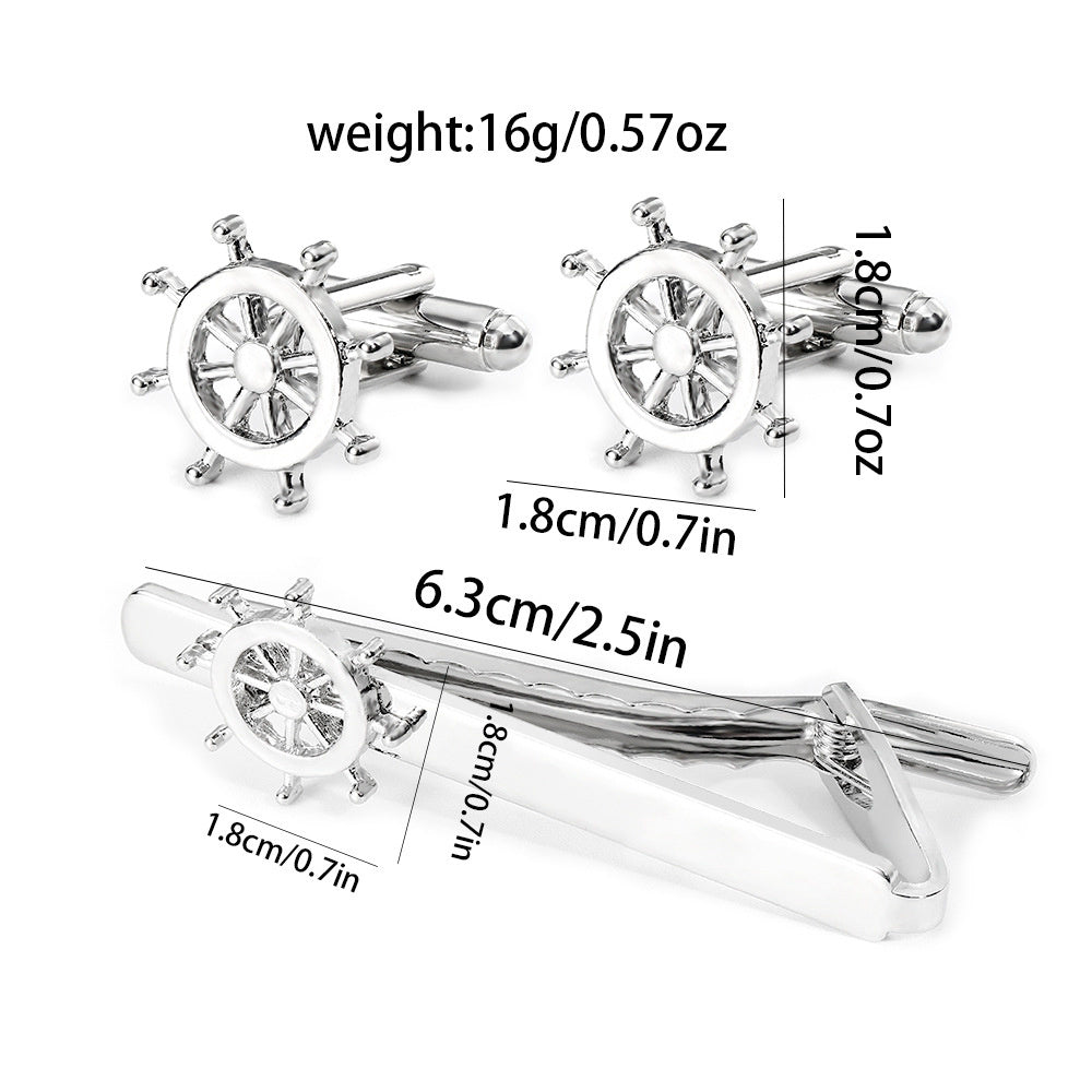 Simple Trendy Men's Rudder Cufflinks Tie Clip