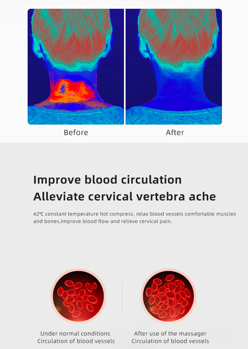 2. Constant temperature massage. Hot compress at 42℃ can relax blood vessels, relax muscles and bones, accelerate blood circulation and relieve cervical pain.