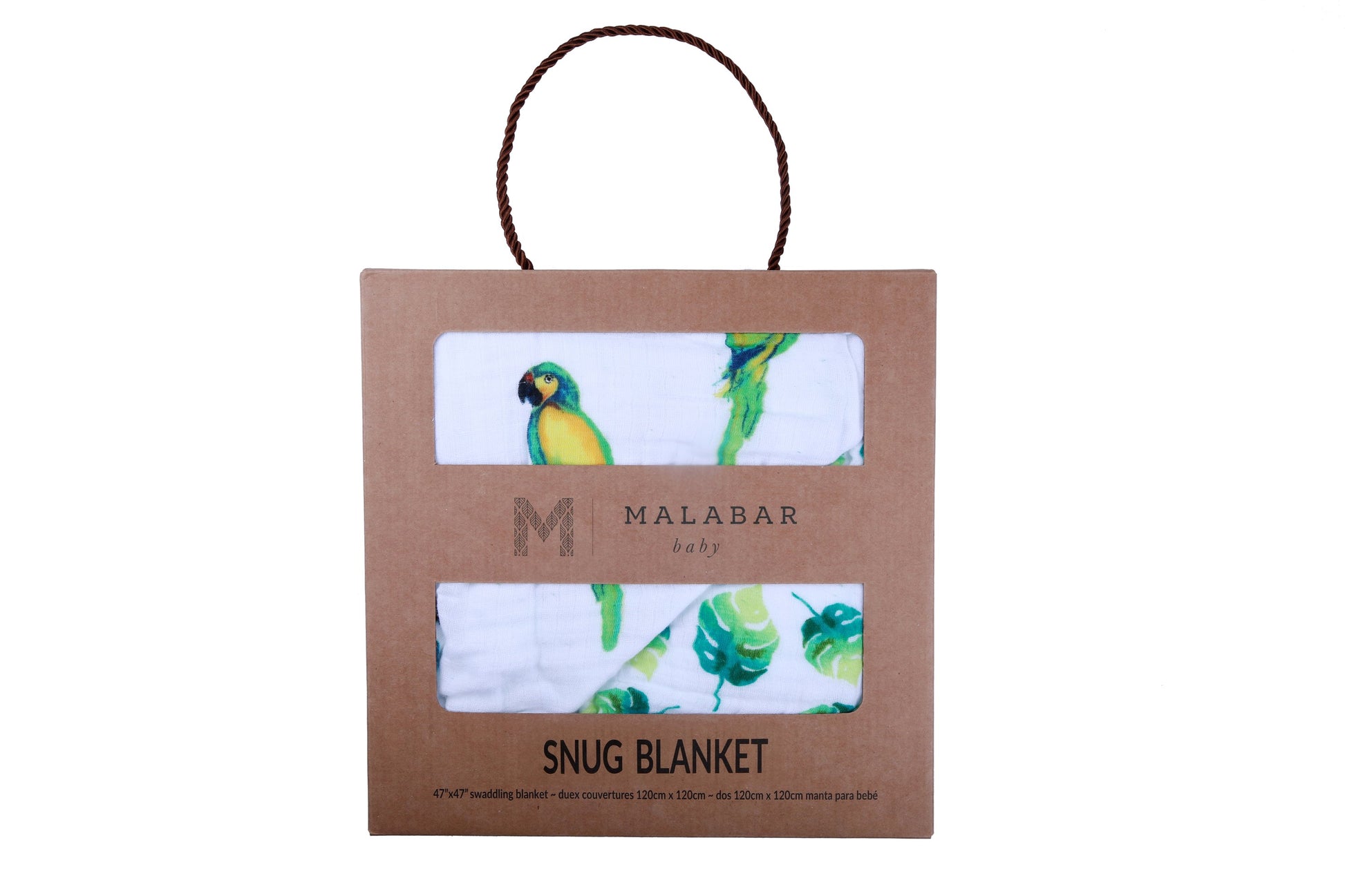The classic reversible snug blanket by Malabar Baby is a customer favorite. It features four dreamy layers of 100% GOTS certified organic cotton muslin. Our snug blankets are used for snuggling but, also make a comfy surface to lay your little one on no matter where the day takes you. Whether you’re at the park, the beach or just playing on the floor, the snug blanket is a baby/toddler essential. The snug blanket is so easy to machine wash so don’t worry about taking it outside on your adventures! Big enough for toddler cuddles while still being beautiful enough for nursery décor - it’s the perfect multi-purpose blanket. Packaged in a lovely, gift-ready, eco-friendly box with top handle. Makes the perfect baby/toddler gift. Matching organic swaddles are also available in all our prints.