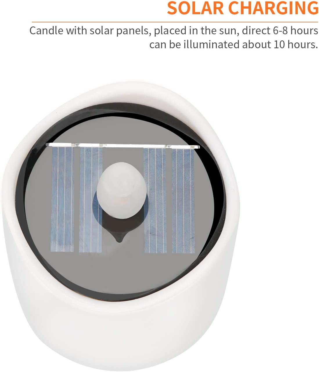 🕯️Solar Power & Energy Saving & Waterproof -- solar candle lamps are powered by solar panel, saving energy. Full charged for 10 hours can support work for 8 hours.