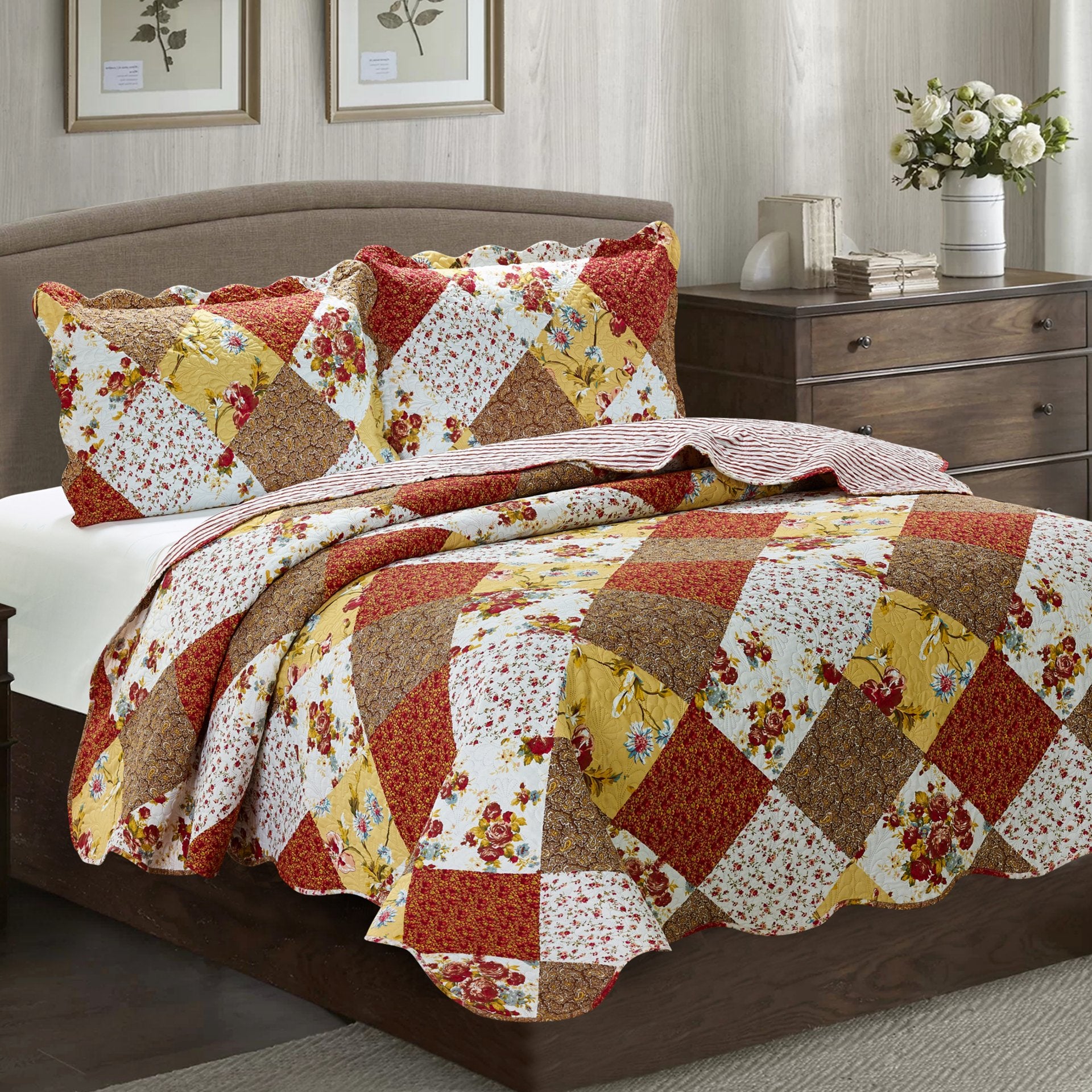 Suzy 3 Piece Quilt Set - Rust