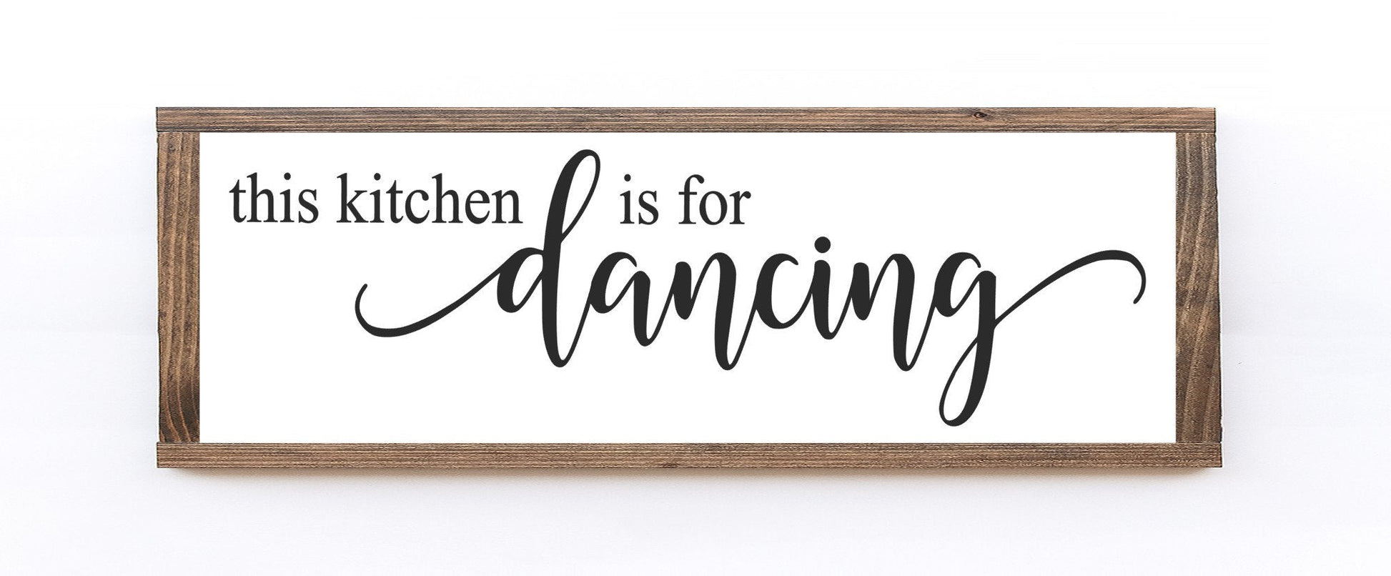The wood background is painted in matte white with the lettering painted directly onto the wooden background.