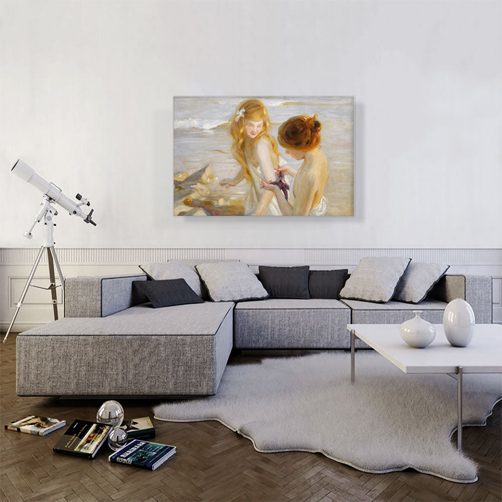 Two Young Girls Looking at Starfish