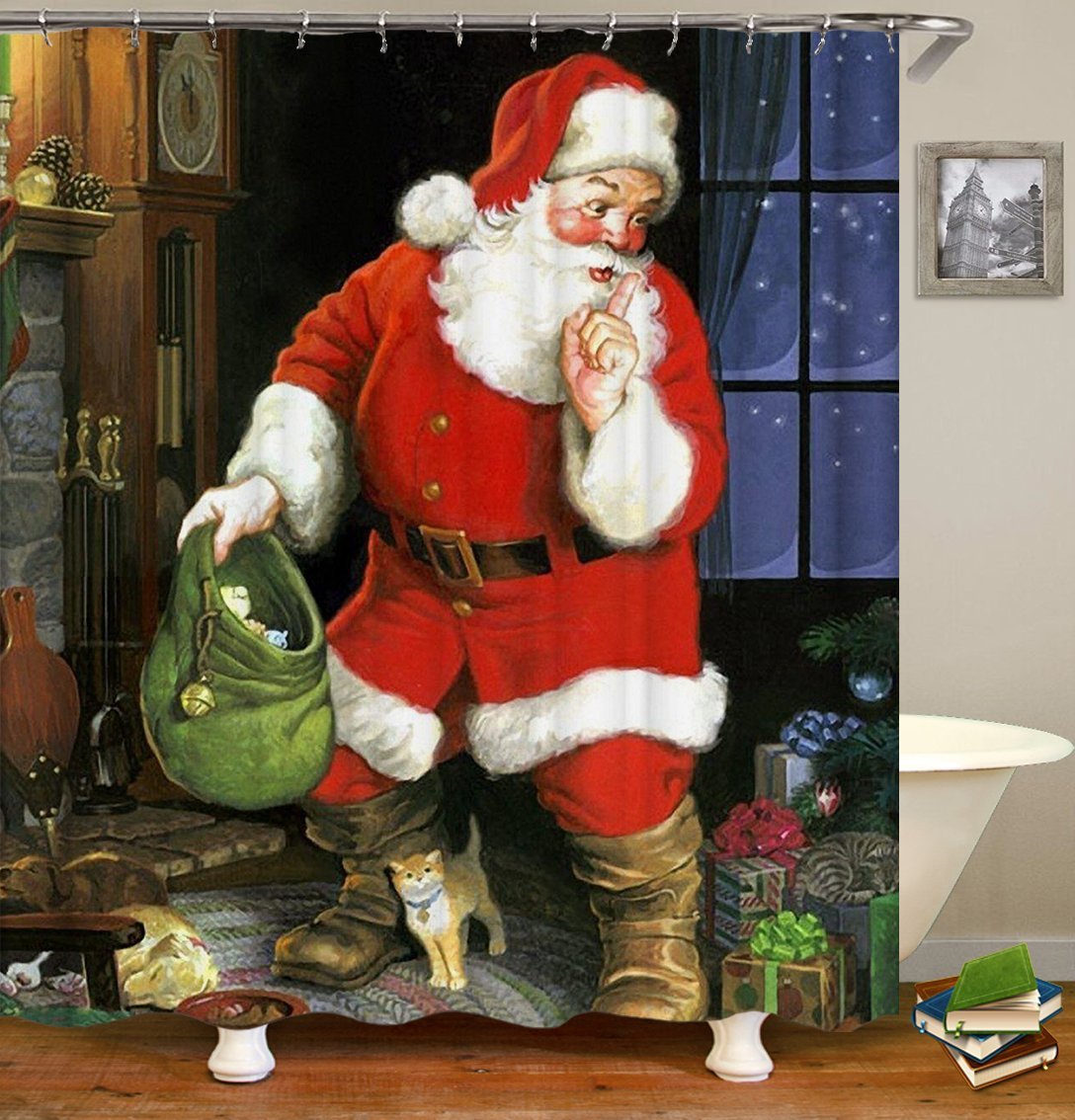 Old style painting of Santa makes a great Christmas shower curtains design. Shhhhhh, don’t tell everyone Santa is here, add your bathroom a Christmas spirit touch and make it all ready for the holiday parties.