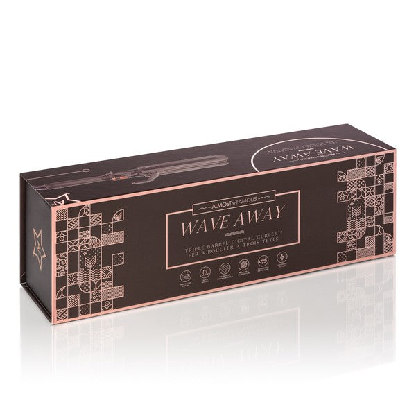 “Wave Away” is a triple barrel curler designed for those days when you don’t have any time to waste and are in need of effortless styling. The 1.25-inch barrels heat up to max temp in just a couple of minutes, and they’re wide enough to give your hair an instant voluminous wave - not a crimped look!