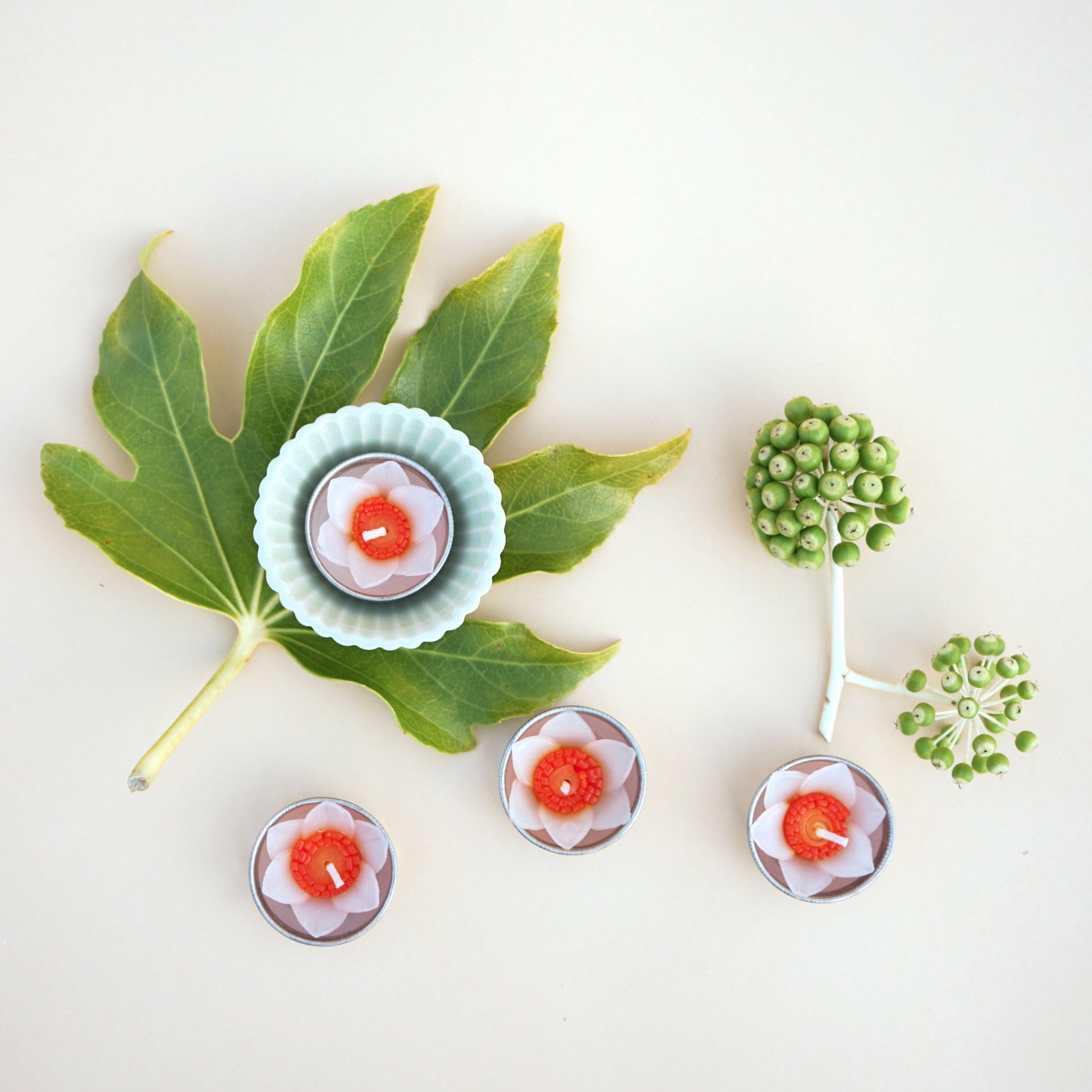Each flower tea light approximately burning time : 3 hoursMaterials : paraffin wax and fragrance