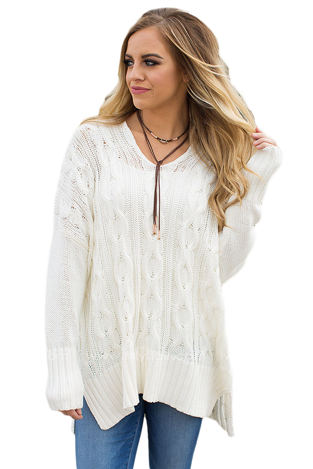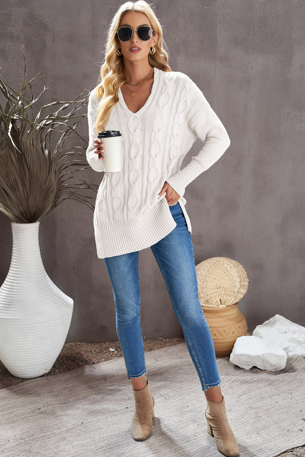 Cozy up in a perfectly oversized knit sweater this season! Whether your day consists of shopping or cuddling up by the fire, this sweater won't let you down! This sweater is a long sleeve, deep v-neck, oversized knit sweater. It is complete with side slits for a draped look. Every girl loves a big, slouchy, oh-so-comfy knit! This one hits the spot.