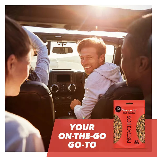 One 11 Ounce Bag of our Chili Roasted No Shells Wonderful Pistachios. Wonderful Pistachios have literally come out of their shells. Same delicious taste, but with a little less work for you. Turn up the heat with Chili Roasted Wonderful Pistachios No Shells. They’re bursting with the big, bold flavors of red pepper, garlic and vinegar to tingle your tongue and keep you craving more. Skip the shells and get spicy for Less Crackin’, More Snackin’. Wonderful Pistachios are a smart, healthy choice for folks around the world. Wonderful Pistachios grows all of its pistachios in California’s fertile San Joaquin Valley. The warm days and cool nights work in harmony with the region’s natural soils to create the perfect growing climate. We then carefully tend and harvest each pistachio using the latest in sustainable practices. Nutritious and healthy pistachios are great as part of an overall healthy diet. Pistachios are also a good source of plant protein. And in addition to tasting great, a single serving includes about 49 pistachios, enough to satisfy your snacking needs. Note: Contains Tree Nuts (pistachios).